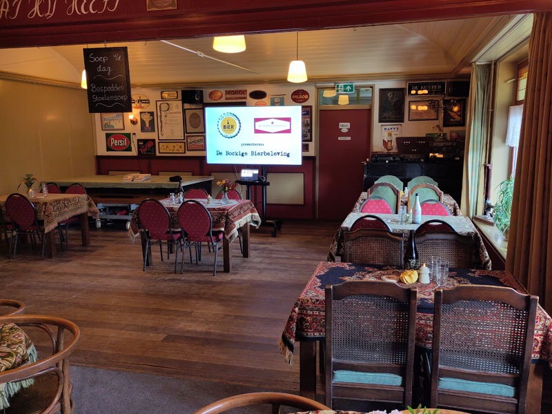 De plek waar het allemaal gebeurde: Het Wapen van Wogmeer. Zij verzorgden de bieren en hapjes, ik de presentatie.
